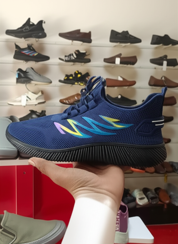 Foreign Trade Fly-Knit Men's Shoes Spring Cross-Border Shoes- Black Blue color